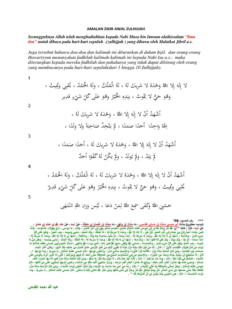 Sesungguhnya Allah Telah Menghadiahkan Kepada Nabi Musa Bin Imraan Alaihissalam Untuk Dibaca Pada Hari Hari Sepuluh Zulhijjah Yang Dibawa Oleh Malaikat Jibril A S